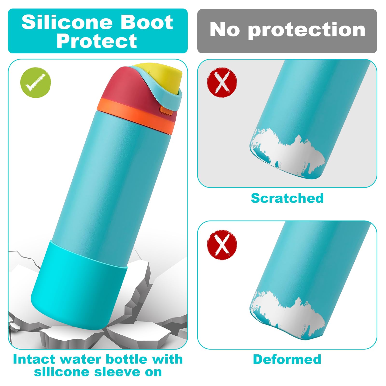 - 【Excellent Protection】Still worried about broken, scratched bottoms of your favorite water bottles? Or embarrassed by the clinking sound the bottle makes on the table? This silicone sleeve for Owala can effectively protect the bottom of the bottle from depression, scratch, skid resistance and noise.