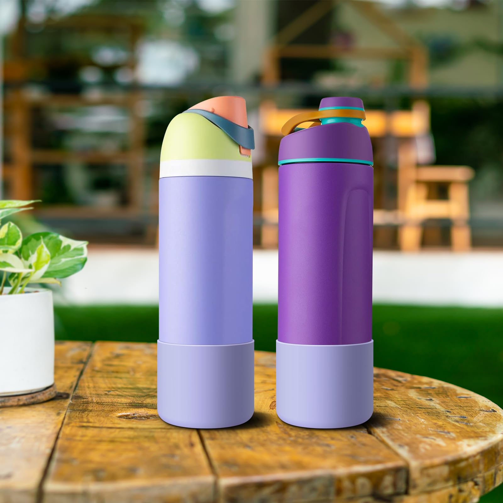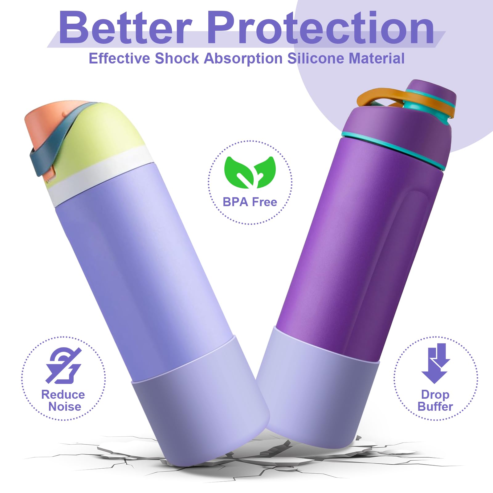 2PCS Silicone Water Bottle Boot for Owala 24 Oz, Alwenid Anti-Slip Protective Sleeve Bottom Bumper Protector for FreeSip, Twist, and Flip Stainless Steel Water Bottles (Purple)