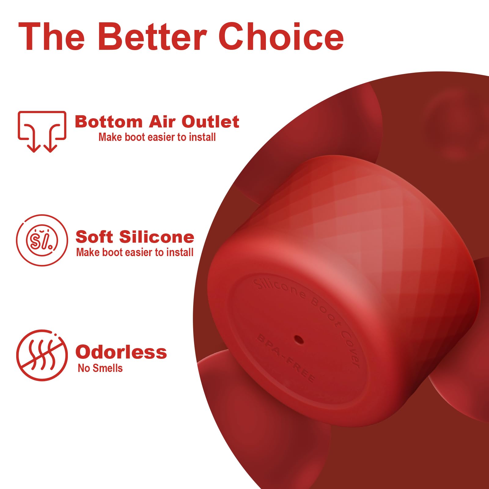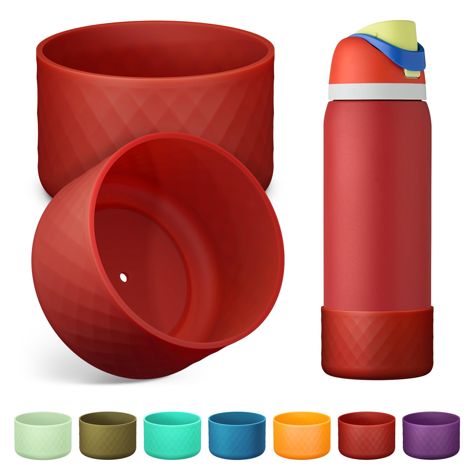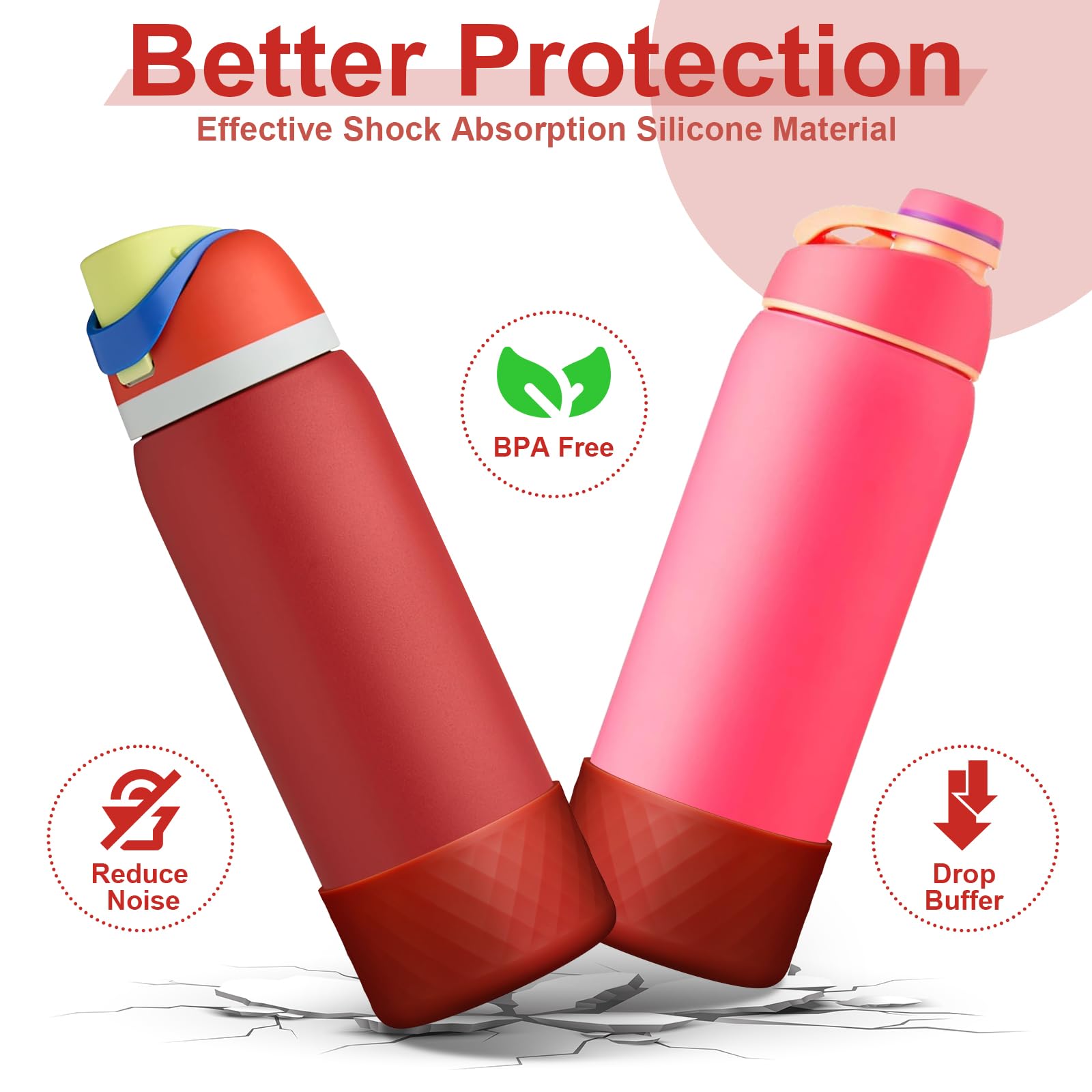 2PCS Silicone Water Bottle Boot for Owala 40 Oz, Anti-Slip Protective Sleeve Bottom Bumper Protector for FreeSip, Twist, and Flip Stainless Steel Water Bottles (Dark Red)