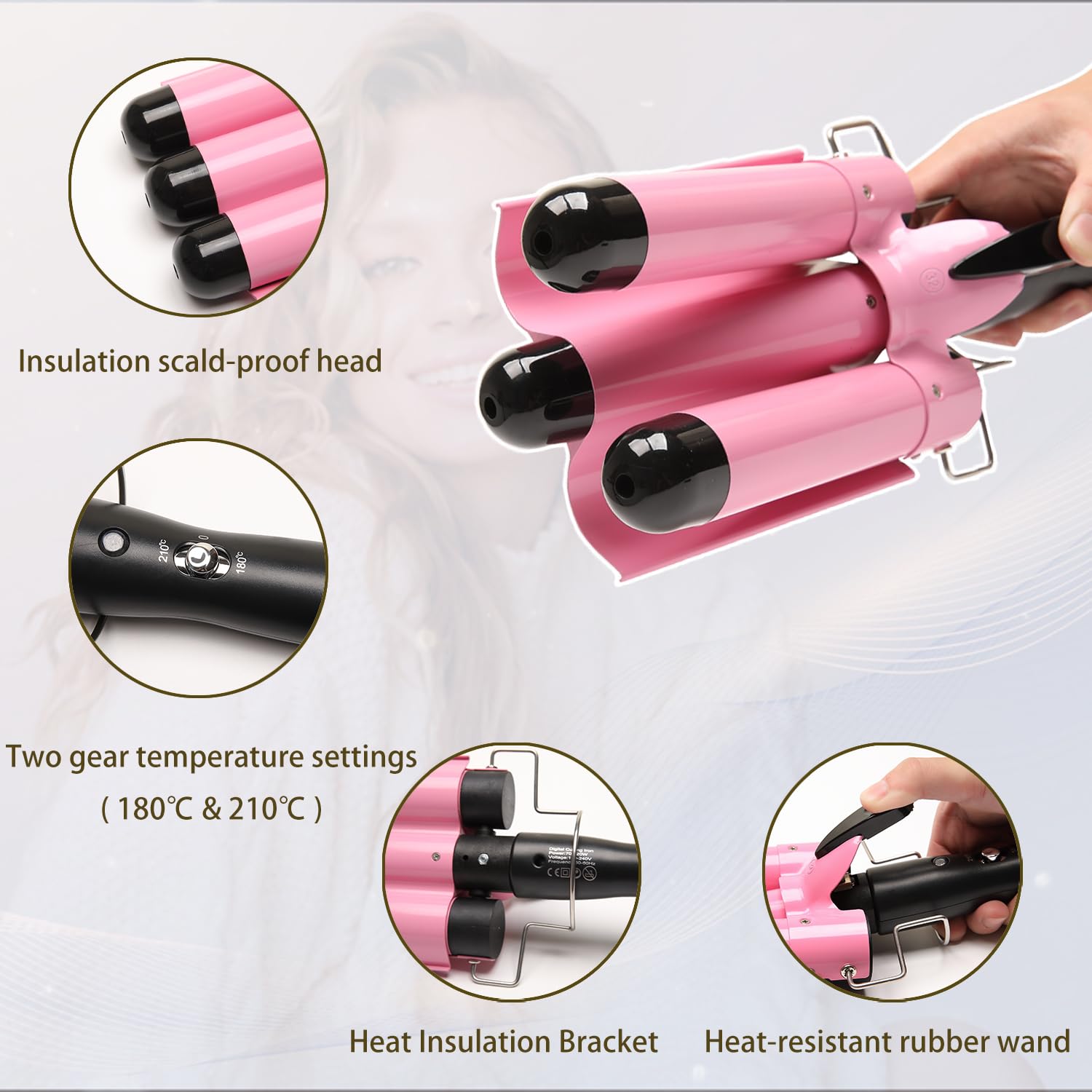 - High Quality And Convenient: 3 Barrel Curling provides high and even heat while protecting hair.Designed with anti skid handle and anti scald barrel tip, heat insulation front part bracket can avoid hair curler contacting with the desktop directly.