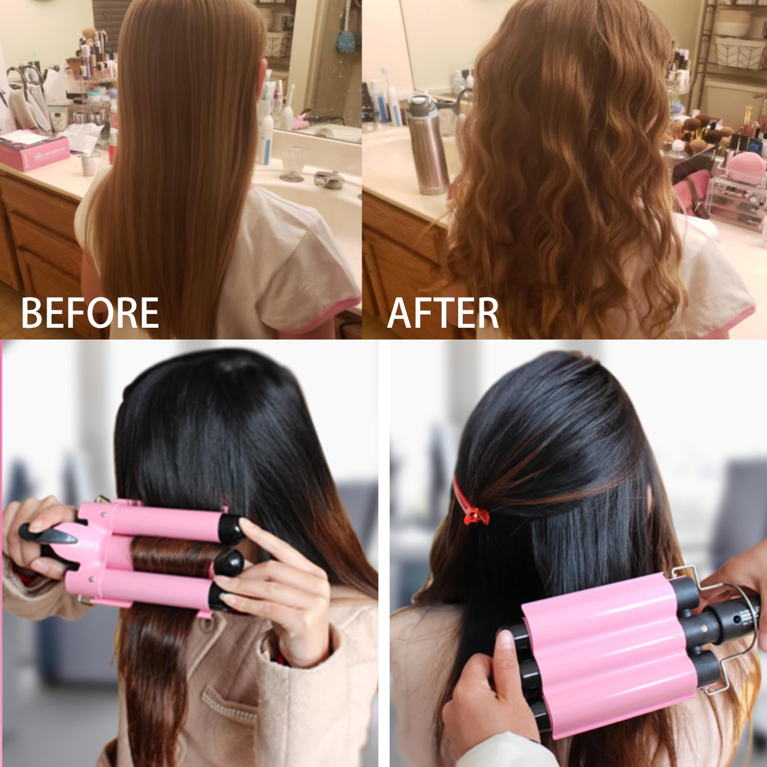 - Professional Curls : With 32mm(1.25 inch) triple barrels,3 barrel curling iron is a great tool for creating natural and elegant-looking curls that last all day. It helps eliminate static, the negative ions released can make your hair more shiny and charming, enhance your hairstyle effect.