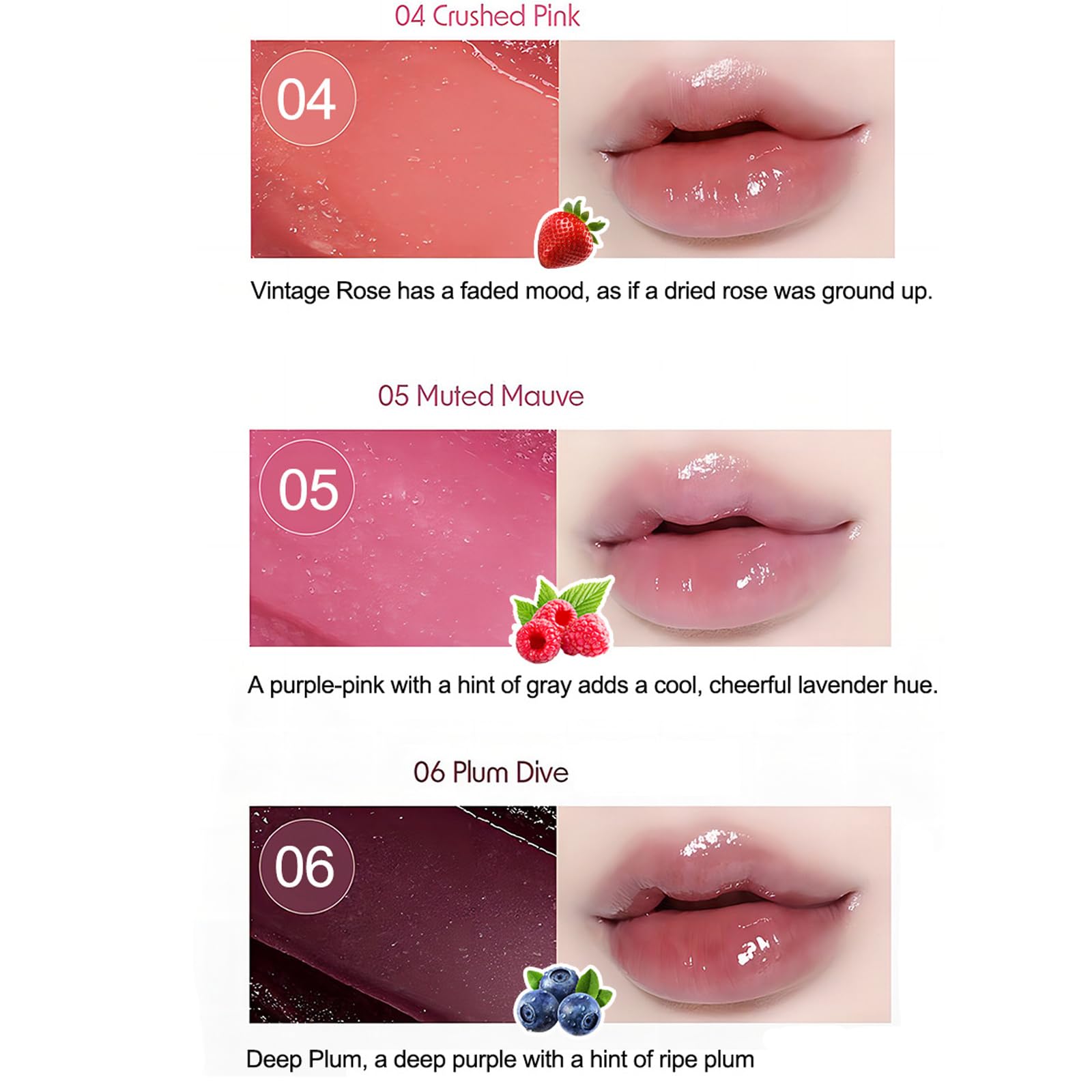 【Moisturing & Nourishing】 Easy like lip balm, nourishing like lip mask all at once! The texture of this lip gloss is like melting lip balm that moisturizes dry lips while also delivering a vivid tint of color and soft shine, keeps your lips moisturized for 12 hours to keep them alive