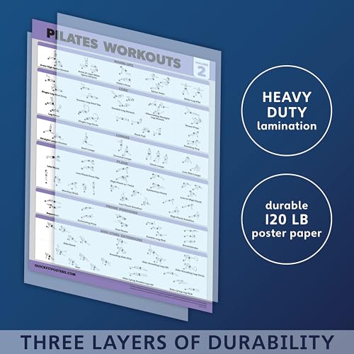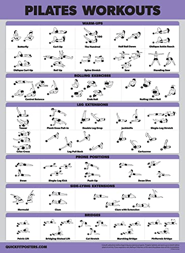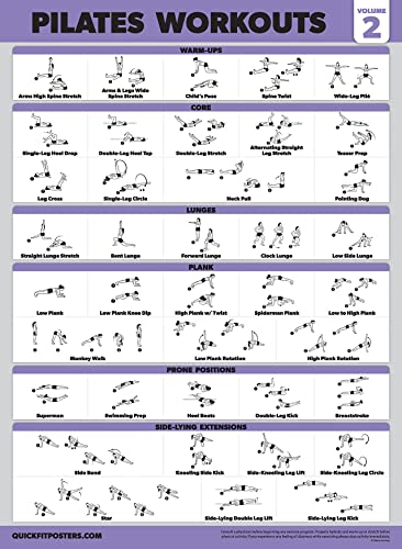 Details: 3 Pack - Pilates Workout Poster Set Volume 1 & 2 + Warm Up Routine - Pilates Mat Work Exercises - Fitness Charts
