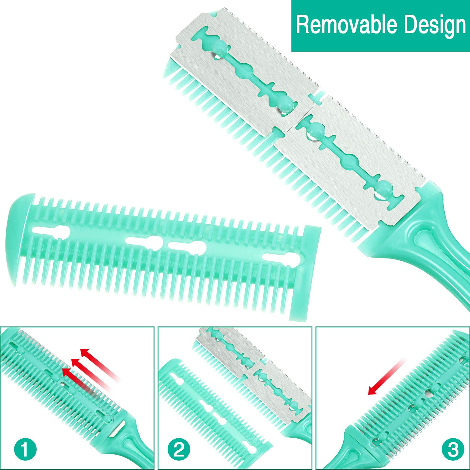 - Package includes: 3 pieces razor comb, 10 pieces razorsuff0cadopt quality stainless steel blade, make it can be applied for longer time; Dual side cutting scissors, double edge razor blades