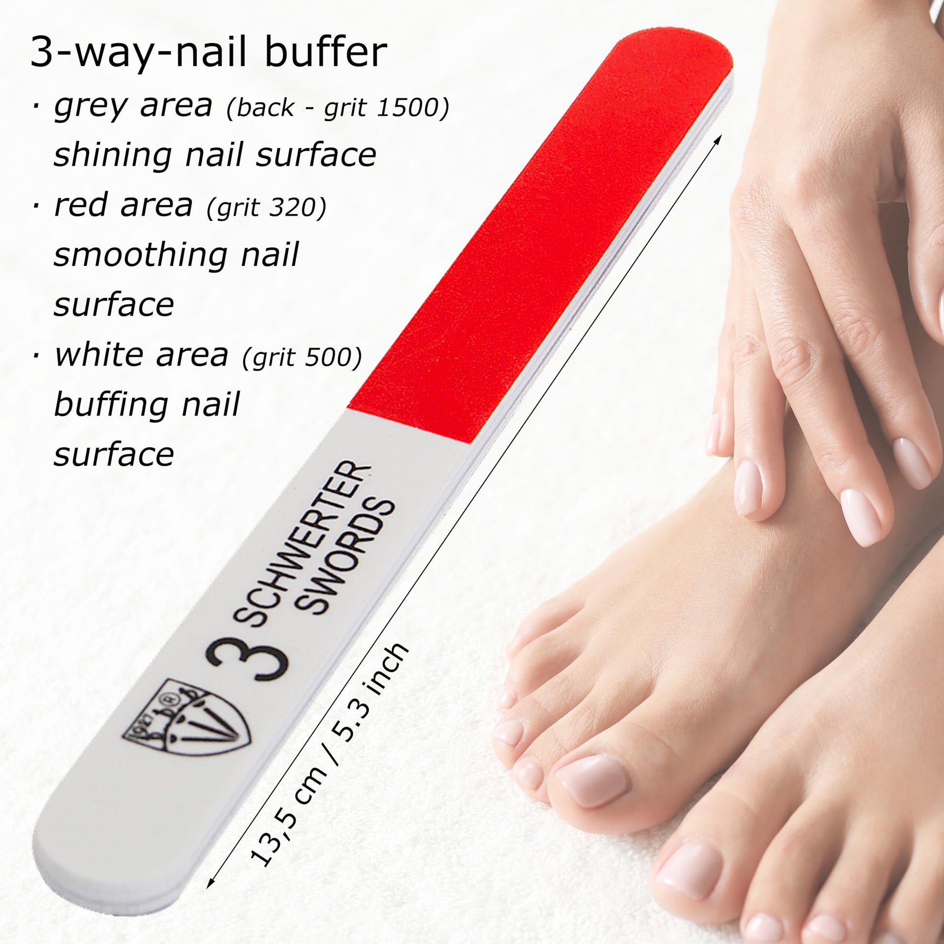 - CONTENTS: Sapphire nail files (5 pieces, length 3,7 inch/4,5 inch/4,9 inch/5,9 inch/6,6 inch) incl. 3-way nail buffer (1 pc. - 5,3 inch)) for the perfect finish