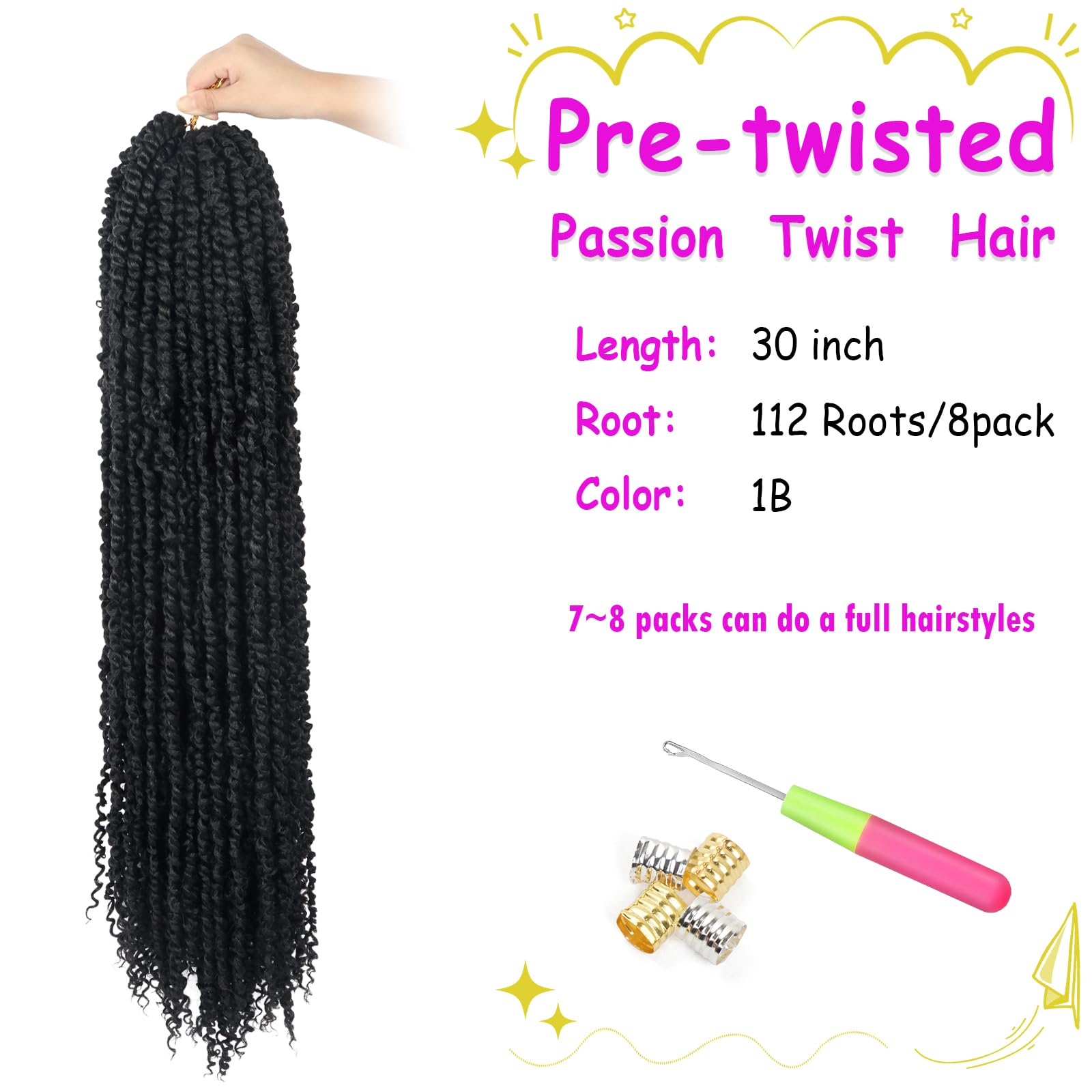 - 5. Passion Twist Package: 8 Packs/ DEAL, 1 crochet hook. 14 Strands/ pack, 112 strands in total, 8 packs are enough for a full head. If not, we also have 2 pack for you to choose from! Please contact us with any quantity problems.