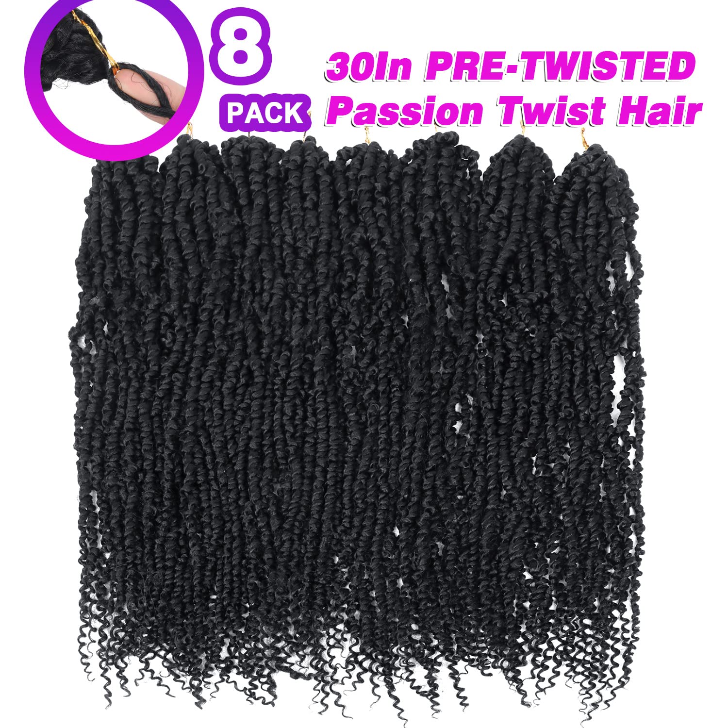 30 Inch Passion Twist Crochet Hair 8 Packs Long Passion Twist Hair Pre-Twisted, Pre Looped Ombre Passion Twists Crochet Passion Twist Hair Pretwisted Bohemian Crochet Hair 1B