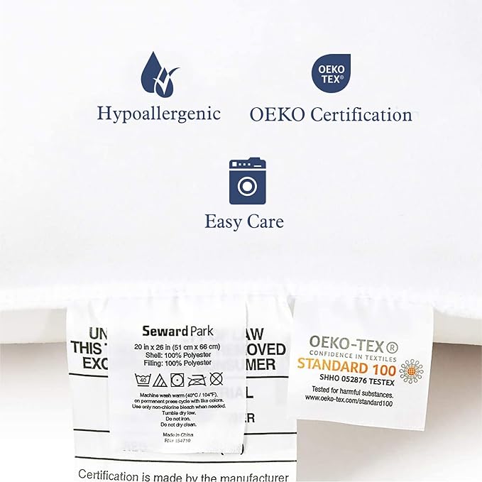 - ALLERGIC FREE – Certificated by OEKO-TEX, the pillow cover and microfiber stuffing are made breathable and hypoallergenic to ensure comfortable, healthy sleep.