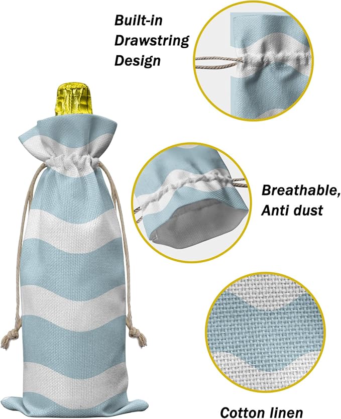 10 Pack Wine Bottle Bags, Blue Ripple Wine Bottle Cover with Drawstring, Simple Blue White Waves Aesthetics Gift Bag for Champagne Wedding Birthday Party
