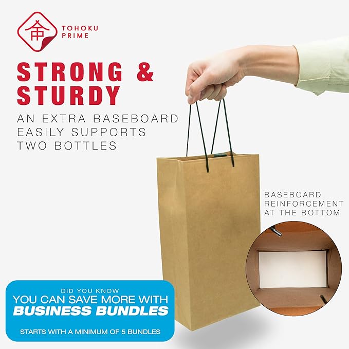 - 💪 HEAVY DUTY: 7.15'x4'x13' made with 160gsm Tohoku Japanese Kraft and a reinforced baseboard that can handle up to 10lbs. Each bulk pack includes 60 counts of wine paper bags