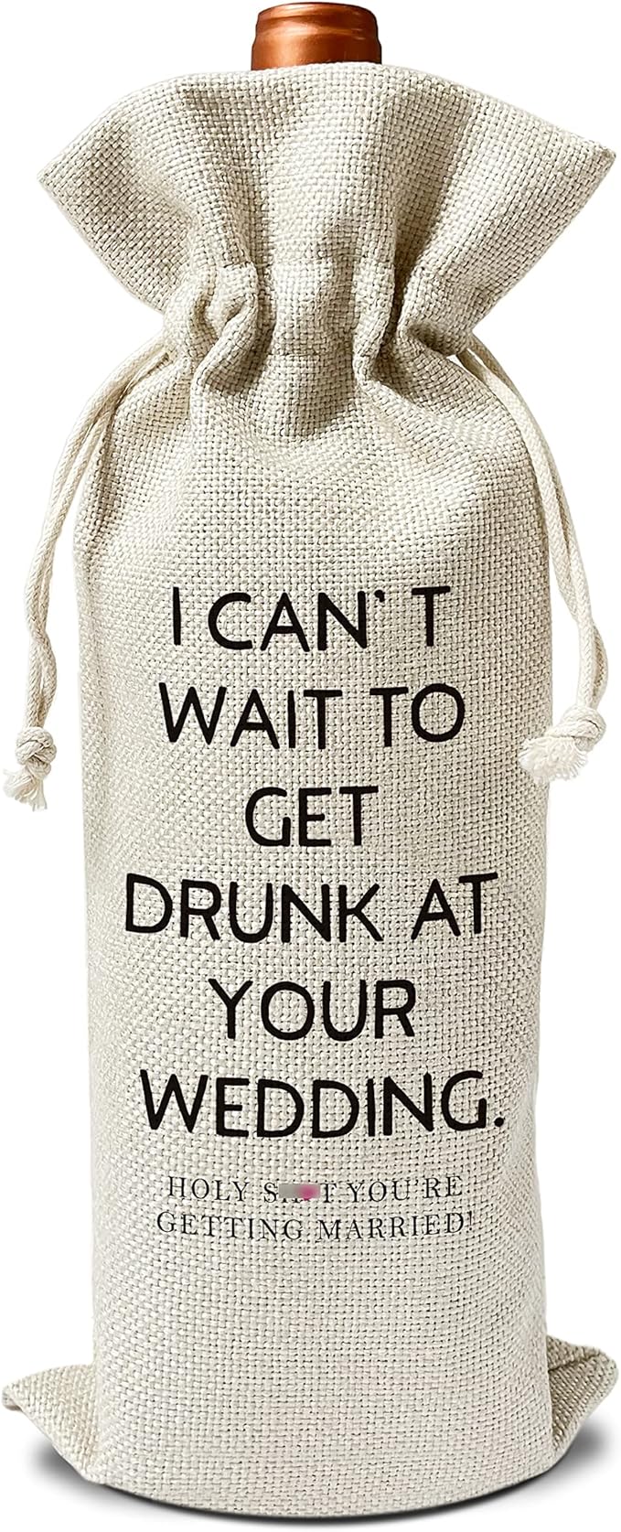 Engagement Wine Gift Bags - Gift for Engagement Gift for Couples, Gift for her, Bride Gift - Reusable Burlap With Drawstring Gift Bag (5.5"x 13.5")-1 Pcs/jiu025