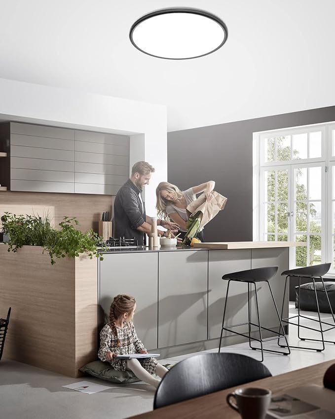 1PACK Flush Mount LED Ceiling Light Fixture Black, 15.8Inch 36Watt, Dimmable & 3000K-4500K-6000K 3 Color Selectable Ceiling Lamp 4000LM Low Profile Ceiling Light for Kitchen Bedroom Hallway Porch