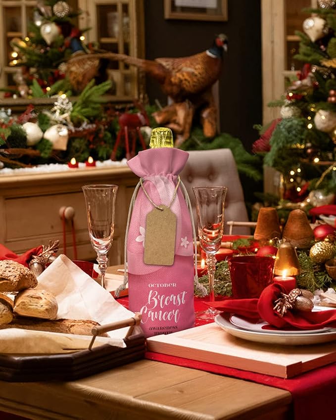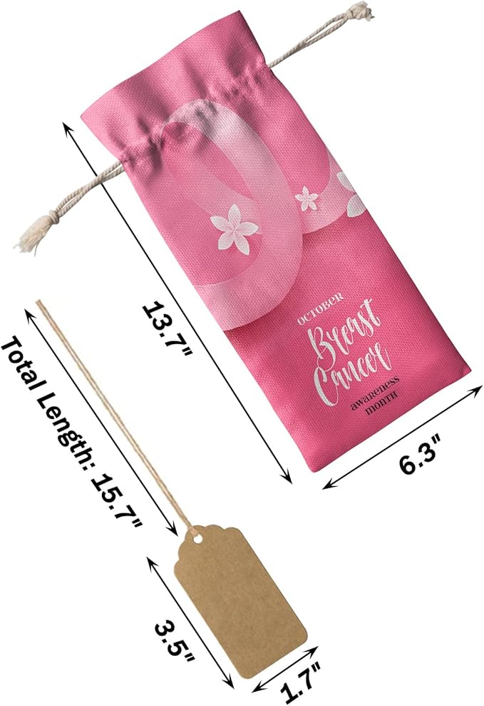 10 Pack Wine Bottle Bags, Breast Cancer Wine Bottle Cover with Drawstring, Gift Bag for Champagne, Wedding, Birthday, Christmas, Thanksgiving, Party Pink Ties Blooming Spring Floral