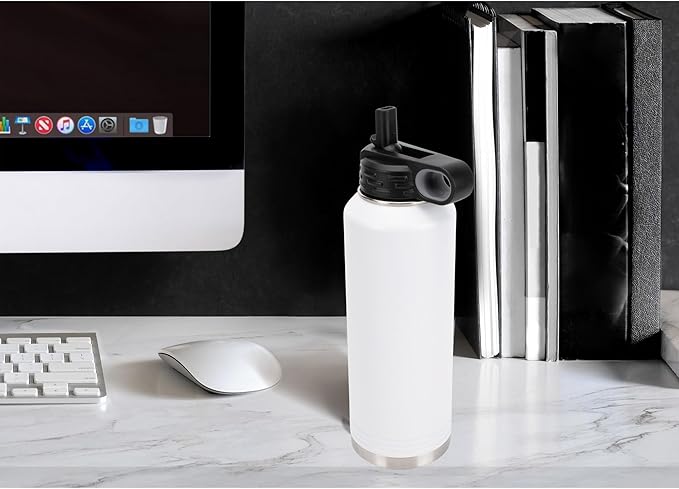 - Made of stainless steel with double-walled vacuum insulation, laser engraved design, and a flip up straw
