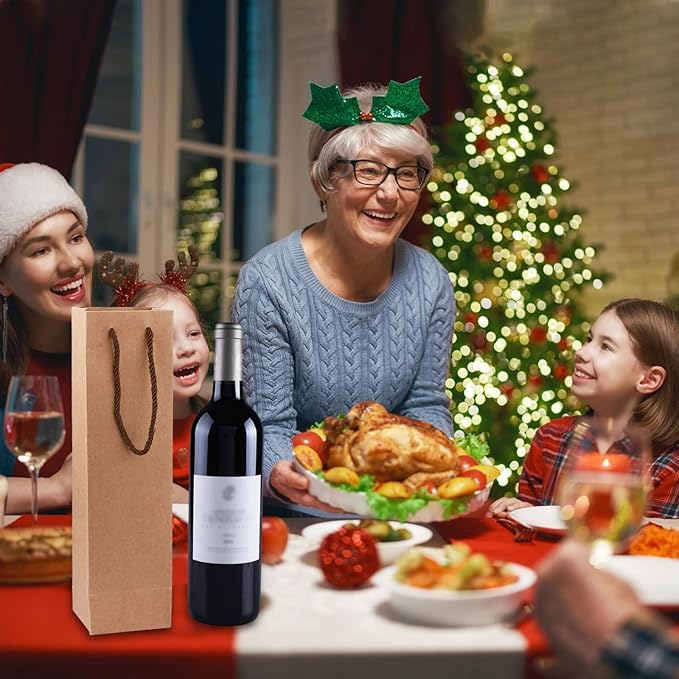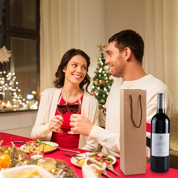 - Superior Quality and Design: Elevate your gift-giving experience with our premium kraft paper wine gift bags. Crafted from high-quality materials, these bags feature a smooth matte finish that exudes sophistication. The well-constructed design ensures durability, making them perfect for presenting fancy bottled wine