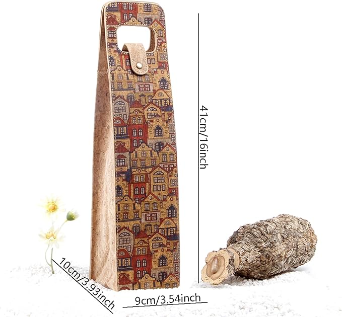 • Perfect Alternative:Made of cork andhigh quality PU leather material, the Wine Gift Bag is comfortable to the touch reusable and eco-friendly.