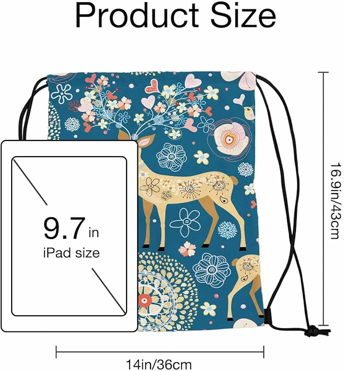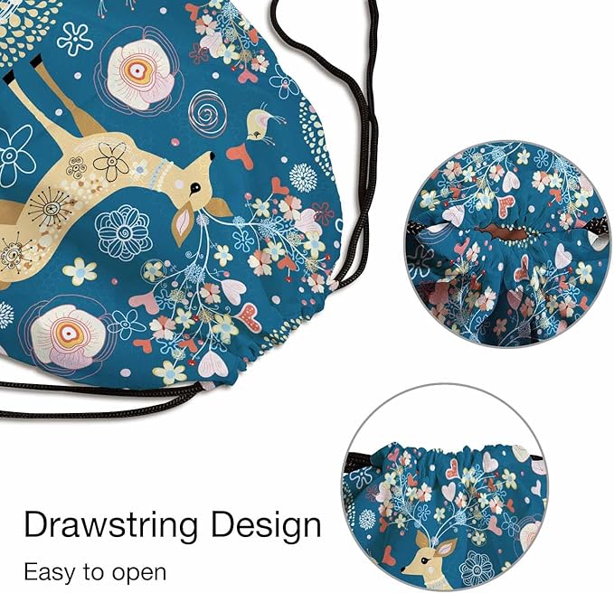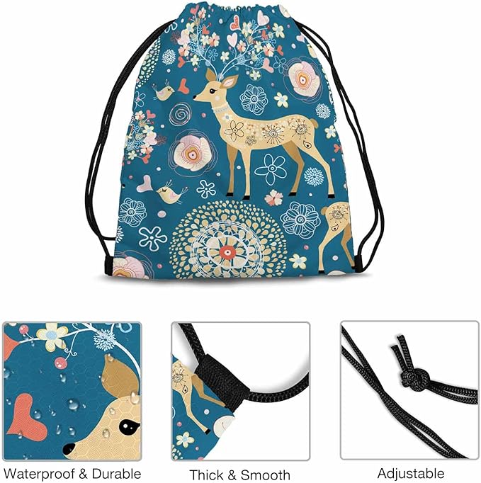 Drawstring Bag Fabulous Deer Waterproof Basketball Bag Wear Pearl Necklace Beautiful Flower Cute Birds Stroage Small Exercise Accessiors Water Bottle Change of Clothes Shoes Ball