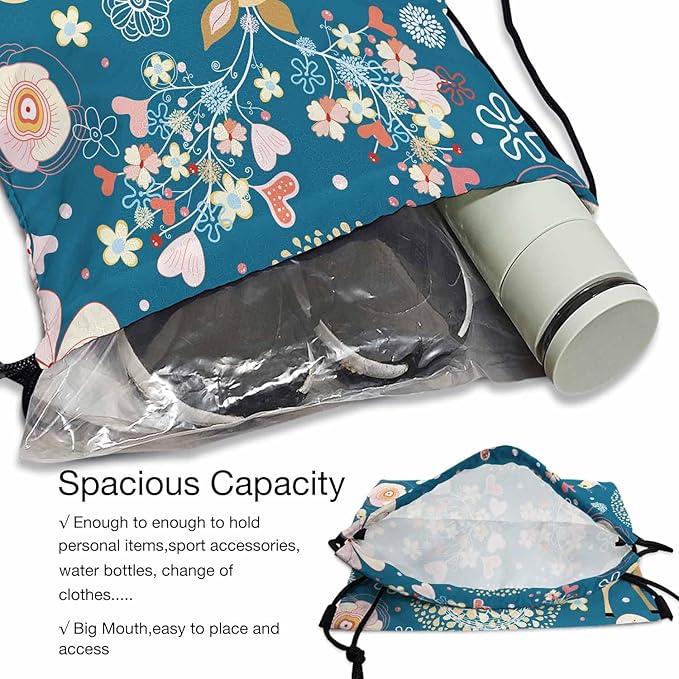 - 【Easy Access to Items】This drawstring backpack has a wide opening that makes it easy to place and access items. It's easy to find what you need, even on a busy day!Both sides are printed with bright color patterns, the design is novel and fashionable, showing your unique taste and adding personal charm.