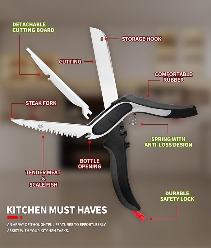- High-Quality Materials: Our food chopper scissors are made of high-quality stainless steel, with tightly sharpened cutting blades that are durable, wear-resistant, rust-resistant, and sturdy. All the ingredients used are food grade and it's a kitchen essential you must have