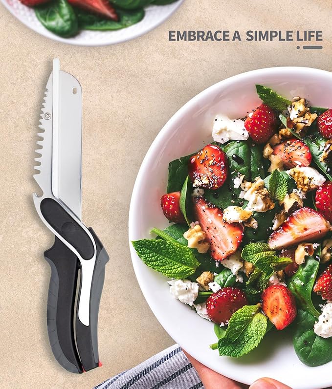 - Multi-Purpose Kitchen Shears for Food: In addition to being food scissors, it also serves as a knife,a fish scale remover,a beer bottle opener,a steak fork