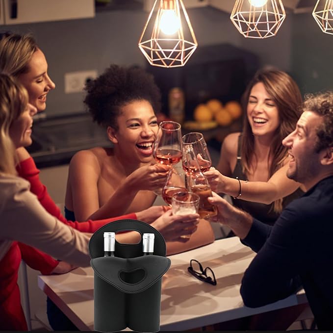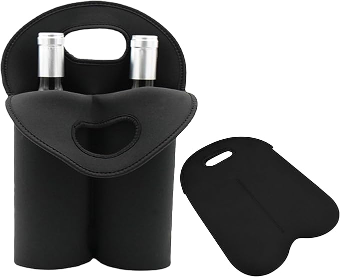 - Wine Carrier Tote Bag: Our 2 bottle wine carrier is made of thick neoprene wetsuit material. Protects red wine bottle or water bottle from knocks. Keeps it temperature so you can enjoy iced wine or hot tea anytime!