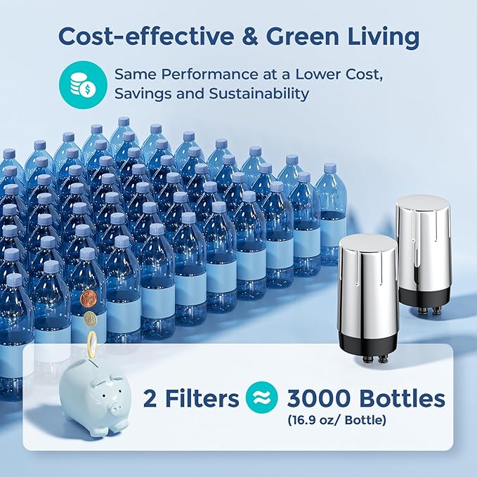 - Cost-effcctive: Same performance as the original filter but at a lower cost. Save up to 3000 single-use 16.9 oz plastic bottles