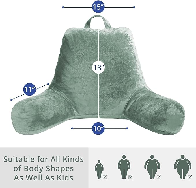 Sasttie Reading Pillow for Sitting in Bed Adult, Velvet Back Pillow for Bed Sitting Up, Backrest Back Support Chair Pillow, College Dorm Essentials for Girls and Boys, Sage