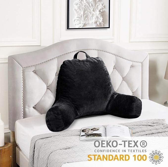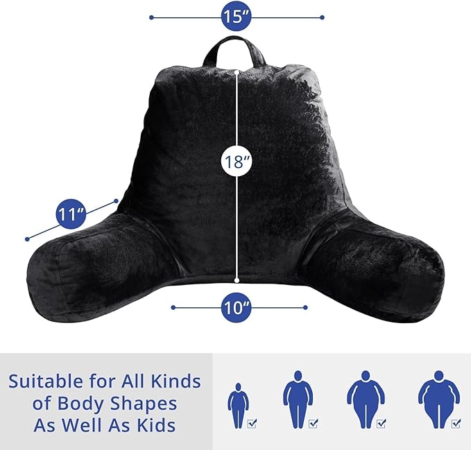 Sasttie Reading Pillow for Sitting in Bed Adult, Velvet Back Pillow for Bed Sitting Up, Backrest Back Support Chair Pillow, College Dorm Essentials for Girls and Boys, Black