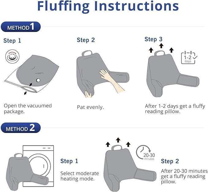 - Vacuum Packaged for Shipping Purpose: Our bed reading pillow is vacuum-compressed for convenient transportation. Please remove the packaging bag and let it sit for 24-48 hours until the reading pillow is fully expanded to its original shape.