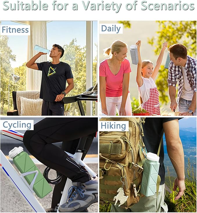 - 【COLLAPSIBLE DESIGN FOR EASY TRAVEL】The collapsible water bottles for traveling are a must-have for those who want to save up space while getting their hydration intake! The collapsible design allows you to fold and store the bottle more easily once it’s empty for light and easy travel.Which makes it perfect for sports, workout, gym, home, travel, office, hiking, camping and more!