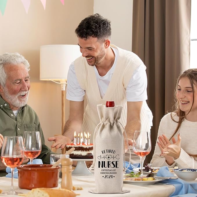 - 【Retirement Wine Bag】Our wine bag makes a perfect retirement gift. Because the wine bag is printed with a special message about 'retirement', and the simple design coupled with beautiful printing, it is the perfect choice for retirement gifts. When you give this retirement wine bag to your family, friends, colleagues or teachers, nurses, etc at the retirement party, it adds a sense of style to the party!