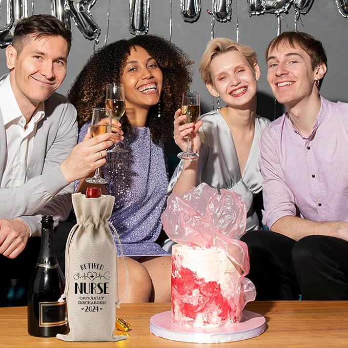 1 Pcs Retired Nurse Wine Bag, 2024 Nurse Retirement Gift Wine Bag, Funny Retirement Gifts for Female Nurse Coworkers Friends