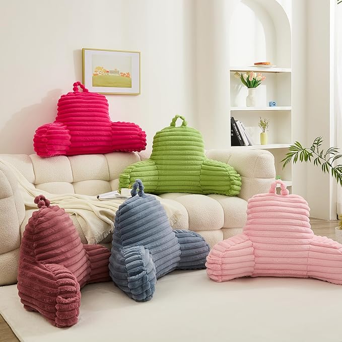 - PLUSH READING PILLOW : Experience ultimate relaxation with this soft reading pillow, cover is made of stripe rabbit fur and filled with premium polyester that perfectly adjusts to your body for optimal support.