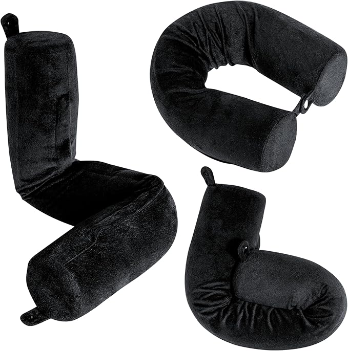 Dot&Dot Twist Memory Foam Travel Pillow for Airplanes - Travel Neck Pillow for Sleeping - Airplane Pillow for Neck Support, Chin, Lumbar and Leg - Adjustable, Bendable Neck Roll Pillow (Velvet Black)