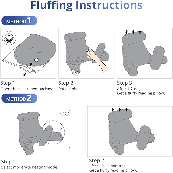 - Vacuum Packaged for Shipping Purpose: Our bed reading pillow is vacuum-compressed for convenient transportation. Please remove the packaging bag and let it sit for 24-48 hours until the reading pillow is fully expanded to its original shape.