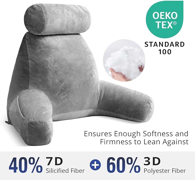 - Premium Polyester Filling: The SASTTIE extra large reading pillow blends 40% 7D silicified fiber and 60% 3D polyester fiber, providing an optimal balance of support and comfort. This premium filling ensures a restful experience, great for sitting in bed.