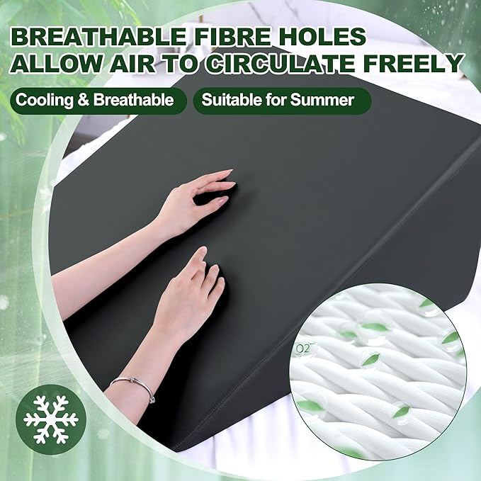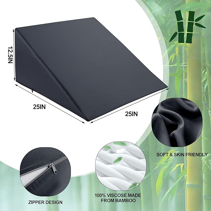 HOMBYS Bamboo Viscose Bed Wedge Pillow Cover with Zipper, 100% Viscose Made from Bamboo, Soft, Cooling, Breathable Wedge Pillowcase Sweat-Absorbent Pillowcase for Summer, 25"x25"x12.5", Dark Grey
