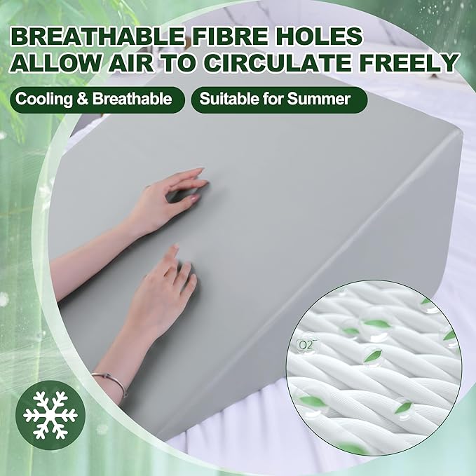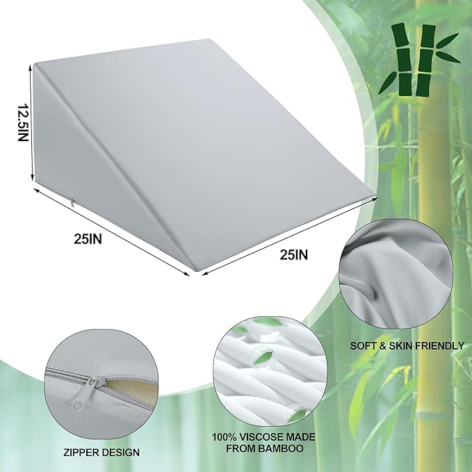 HOMBYS Bamboo Viscose Bed Wedge Pillow Cover with Zipper, 100% Viscose Made from Bamboo, Soft, Cooling, Breathable Wedge Pillowcase Sweat-Absorbent Pillowcase for Summer, 25"x25"x12.5", Light Grey