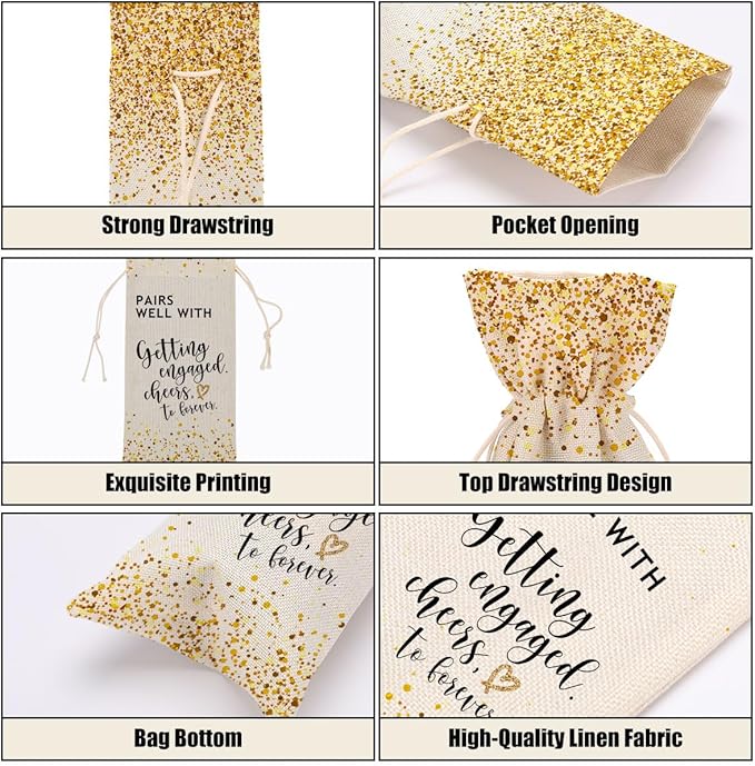 • Premium Material: Our wine gift bag is made of high-quality linen fabric, which is durable and reusable, reducing the impact on the environment. Good quality, strong support and safe enough to protect and hold wine or champagne. There is a drawstring design at the opening for easy opening.