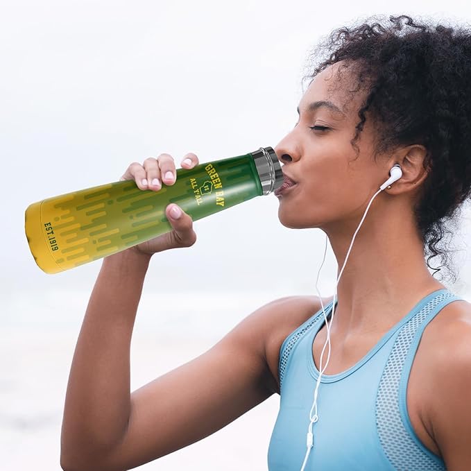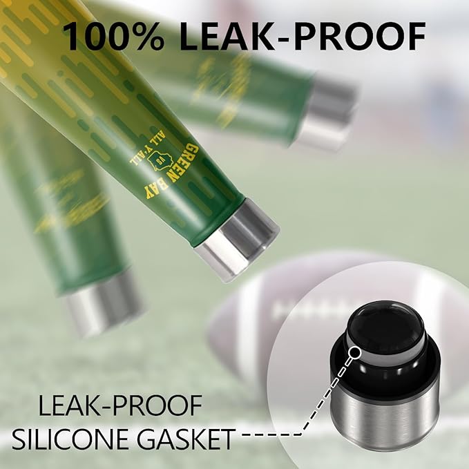 16oz Green Bay Stainless Steel Insulated Water Bottles New Cola Shape Bottle, Reusable Water Bottle Leak Proof Metal Sports Water Bottle Thermos Cup