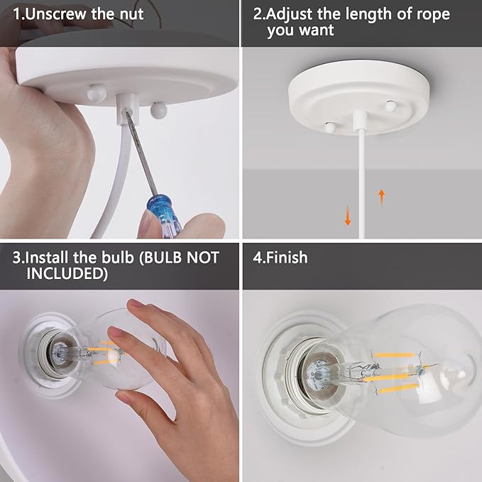 - [Easy Installation]: White pendant light fixtures Include all mounting hardwares for quick and easy installation.can be applied to the sloped ceiling for your space needs.