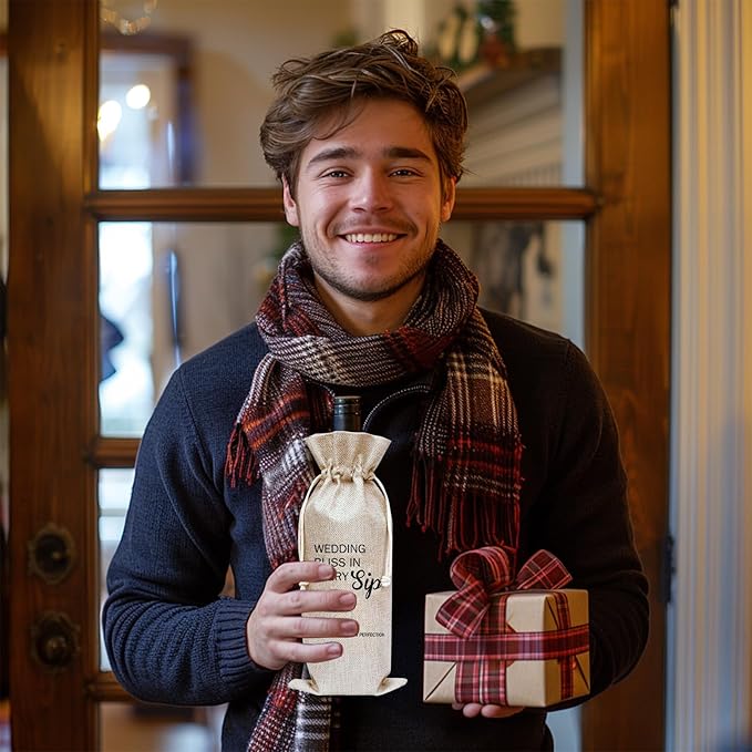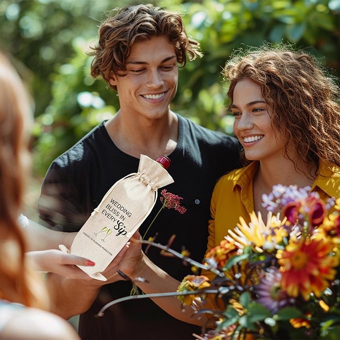 - 【Unique Design】Featuring the phrases 'Wedding bliss in every sip' and 'Cheers to planning perfection,' this wine bag is the perfect gift accessory. Fill it with a fine bottle of wine or champagne to convey your heartfelt wishes and congratulations to the happy couple.
