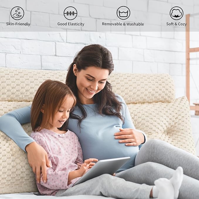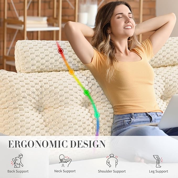 - [ERGONOMIC DESIGN] - The headboard pillow is designed with your comfort in mind. The ergonomically shaped pillow conforms to the natural curvature of your back, providing the perfect support for your upper body, and easing the stress on your back and shoulders. Reading, watching and resting in bed will be more comfortable than ever with our headboard pillow.