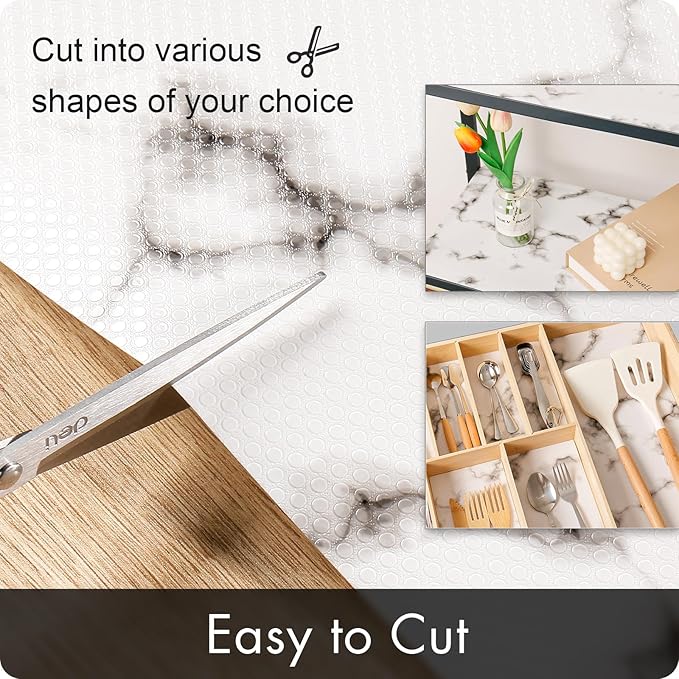 - 【Easy Installation】: Easily cut the Cabinet Liner to any size and shape you need;Perfect for use in cabinets, drawers, refrigerators or on wire shelves;Our Shelf Liners for Kitchen Cabinets are thick, strong, and reusable, meeting all your household needs