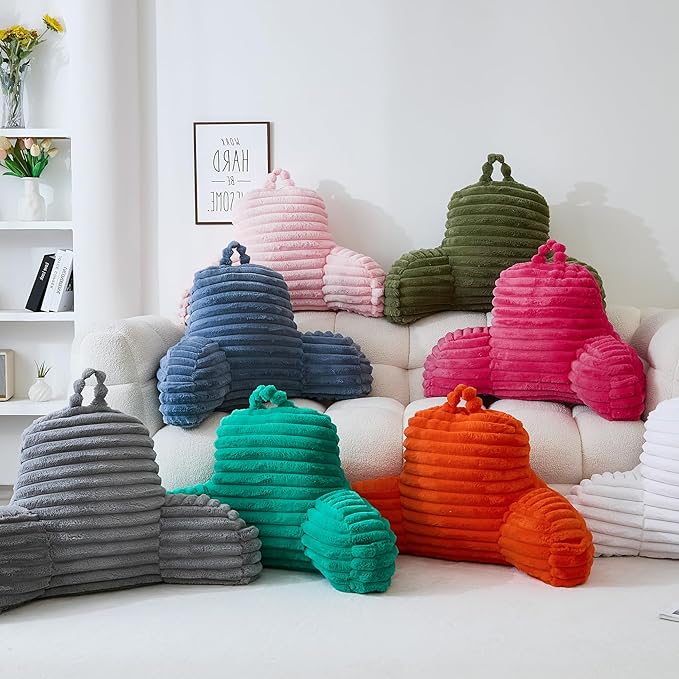 - PLUSH READING PILLOW : Experience ultimate relaxation with this soft reading pillow, cover is made of stripe rabbit fur and filled with premium polyester that perfectly adjusts to your body for optimal support.