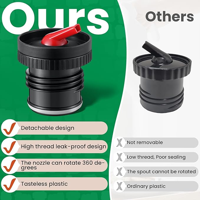 - 2 IN 1 NOZZLE DESIGN: This water bottle replacement lid features a 2 in 1 design with two different pouring methods; You can remove the nozzle section to pour liquid faster, or use the spout for precise pouring; The nozzle can rotate 360 degrees, allowing you to pour beverages without completely removing the cap