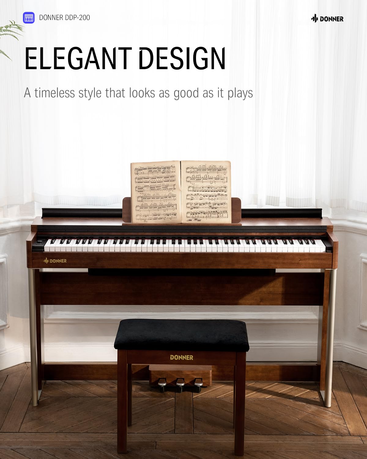 - ๐๐ฉ๐ฉ๐๐๐ฅ๐ข๐ง๐ ๐๐จ๐จ๐ ๐๐ซ๐๐ข๐ง ๐ ๐ข๐ง๐ข๐ฌ๐ก - Donner DDP-200 digital piano features appealing wood grain body finishes and rich dark oak colors. The incredibly light-luxury home style is simple to match with contemporary interior design. It's a light, expensive, and attractive musical instrument as well as a gorgeous piece of furniture