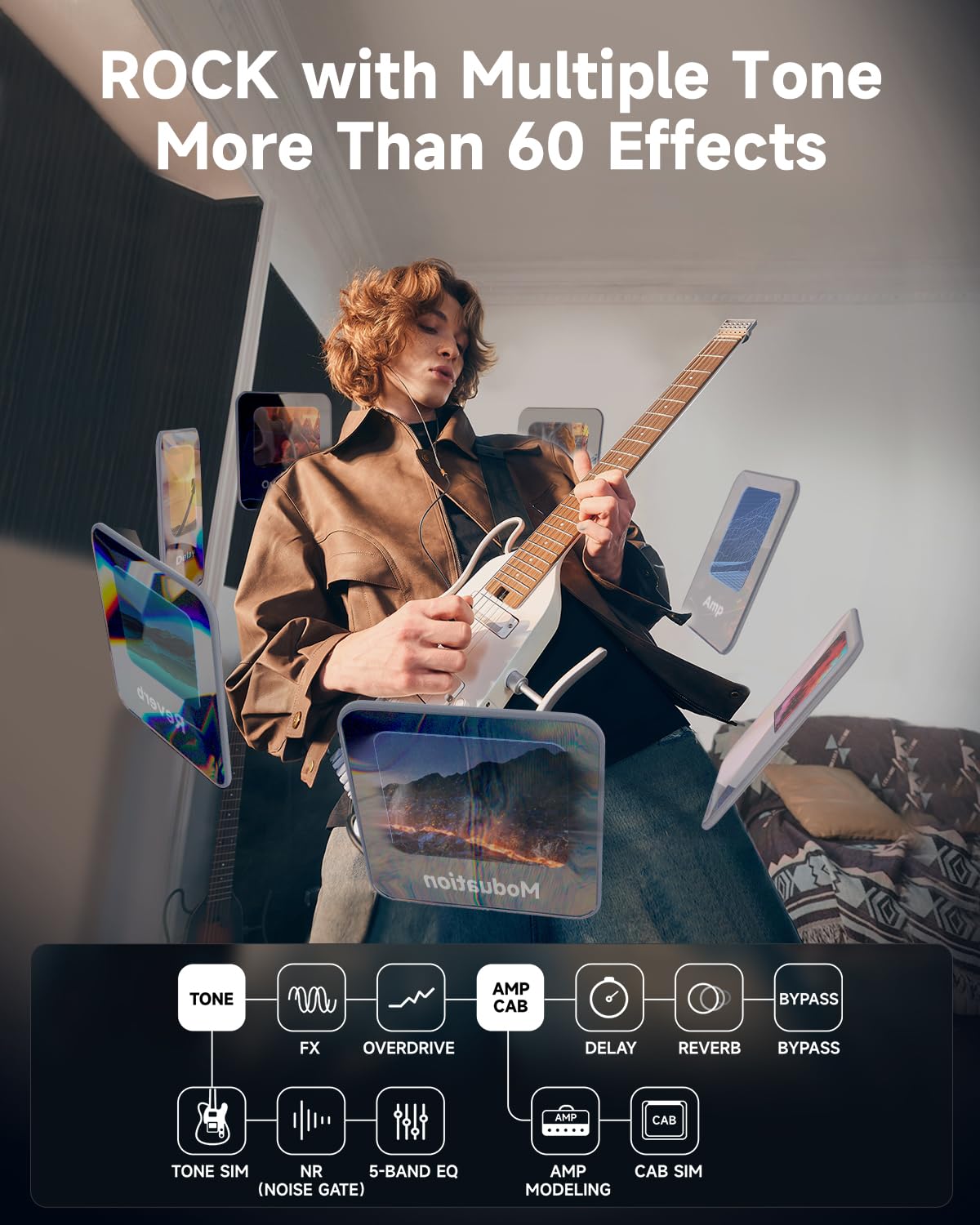 - Real Amp Modeling- The DONNER H2 chip, designed and developed in-house, supports more advanced and complex audio algorithms, delivering higher-quality audio sampling. With 19 classic amp models and 12 cabinet simulations, the HUSH X PRO Donner electric guitar allows independent control of each, making it easy to switch between different amp tones during performances, practice, and recording