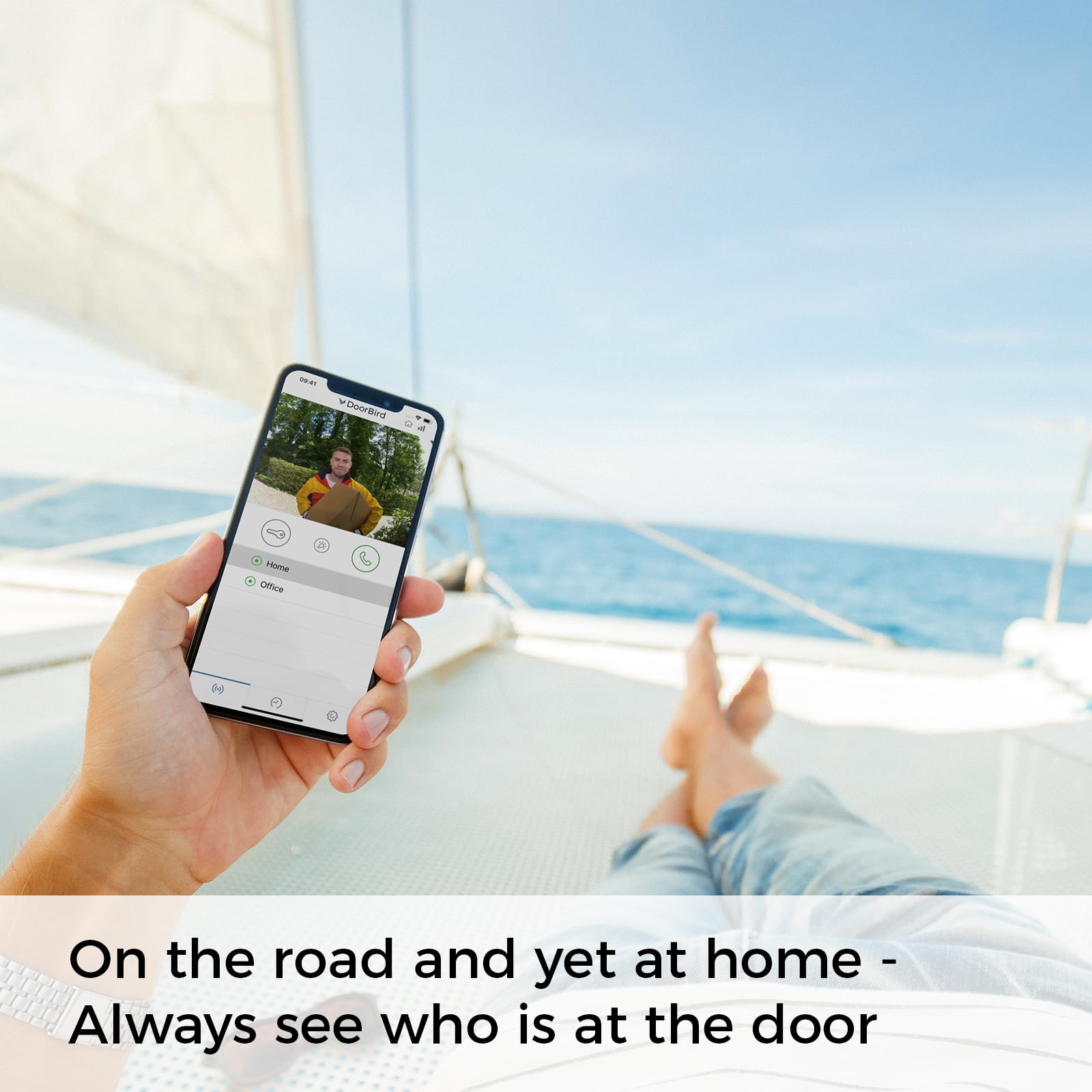Details: HOW DOES IT WORK? Imagine, you are not at home and your children have locked themselves out or the courier wants to deliver a parcel. With DoorBird this is no longer a problem. Every time someone rings the doorbell you will get a push notification on your smartphone or tablet. Via the DoorBird App you can talk to visitors and also see them live in HD quality. You will never miss a visitor again. With DoorBird you are on the move and yet at home, even if a burglar rings at the door to check if someone is at home.