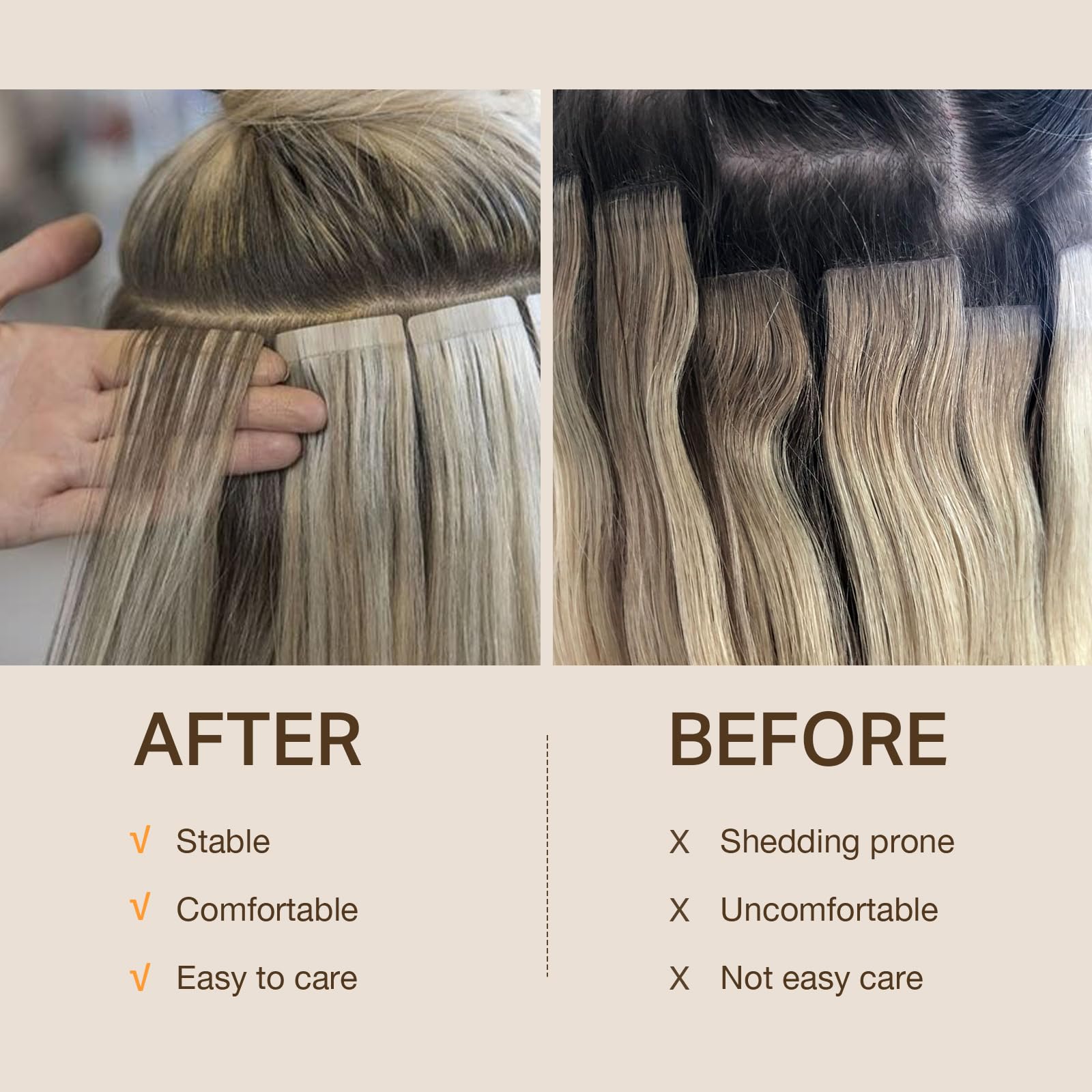- Easy to Apply & Remove: Each hair extension tape has a pre-cut in the middle, which is convenient for you to peel and stick. The tape material is specially designed and manufactured, please use a professional remover for gentle removal without residue